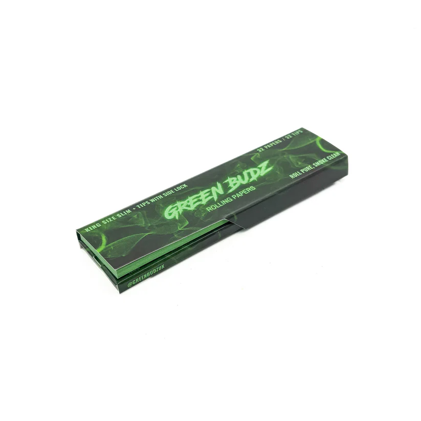 • 1x Limited Edition Green Budz Rice Papers (King Size Slim + Tips)